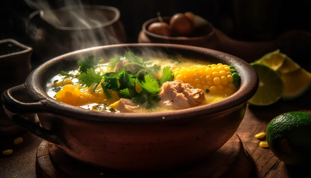 Una vez listo, retira el pollo de la olla, desmenúzalo y devuélvelo al caldo. Ajusta la sazón con sal y pimienta al gusto. Justo antes de servir, añade el jugo del limón para potenciar la vitamina C y las propiedades antioxidantes, y espolvorea con cilantro o perejil fresco picado. - Servir y Disfrutar:
